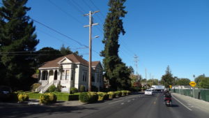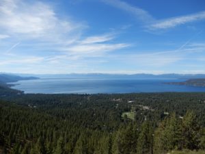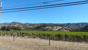 Nun runter zum Lake Tahoe. Dies ist der grösste Alpensee von Nordamerika auf der Höhe von 1’900m. Wir cruisen gemütlich dem See entlang und geniessen diese wunderbare Gegend. Kleine Dörfer, sehr gepflegt, sowie grosse Villen säumen die Strasse. Es ist um diese Jahreszeit sehr schön. Ich stelle mir vor, wie romantisch diese Orte im Winter sind. Kaffeehalt in Tahoe „City“. Weiter dem See entlang bis zur Südseite und dann auf die 50 West und nun bergab. Wir sind auf 999m, was wir seit Tagen nicht mehr waren. Die Temperaturr liegt bei 25 Grad. Sofort die warmen Kleider verstauen und weiterfahren. Die Strasse wir immer breiter und ist bald auf 5 spurig. Wir nehmen den schnellsten Weg durch Sacramento und verlassen in Davis die 50 West um auf die 128 zu gelangen. Obst, vor allem Niederstammbäume, Traubenstöcke, Melonen, Sonnenblumenfelder rechts und links der Strasse. In David ist eine der grösten Universitäten (28’000 Studierende) welche sich mit Landwirtschaft befassen. Das Napa Valley iund die Gegend um Sacramento ist eine sehr fruchtbare Gegegnd. Nochmals rauf bis auf 280m und abzweigen auf die 121m und dann sehr  kurvenreich, zwischen Rebbergen hinunter nach Napa auf Meereshöhe.