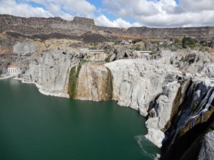 Besuch der Twin Falls. Der Snake River hat keinen hohen Wasserstand und somit sind die sonst wohl imposanten Fälle nur ein Rinnsal. Die Sonne zeigt sich und Moni meint: Es ist schon viel wärmer. Ja, die Temperatur ist für kurze Zeit bei 13.50 Grad. Auch hier ist die Auswahl mit Essen klein. Langsam haben wir die „Fast Food“ Kost satt und träumen von unserer Küche mit frischen Zutaten und vor allem mit weniger Fett und Saucen. Für 190km auf die US-93 South.