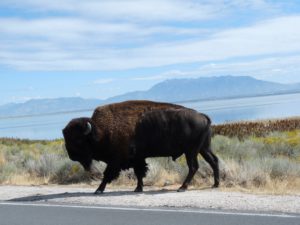 Etwa 90 km von Salt entfernt liegt Antelope Island beim Great Salt Lake, der breiteste See in der weiten Umgebung. Über die I-15 North, damit wir so schnell wie möglich aus der Stadt kommen. Bald auf die 67 uns dann auf der 273 durch die Dörfer Kaysville und Layton. Salt Like City, wie auch alle Orte , welche wir durchfahren, sind sehr gepflegt und sauber. Es liegt weniger Abfall am Boden (Littering  fine zwischen $500 und$1000), als bei uns. Auch um die Fast Food Restaurants ist nichts auszumachen.