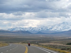 Obwohl südwärts, ist es kalt, keine Sonne und wir bewegen uns zwischen 1’600m und 1’900m. Hin und wieder Kühe auf der Weide und irgendwo ein Haus. Je höher wir kommen, keine Menschenseele. Die Schneeberge sind nahe. WIr fragen uns, ob wir wohl das falsche Equipment dabei haben und wir die Teffli’s mit den Skiern tauschen sollten. Dabei erinnern wir uns, dass in 2 Monaten die Skisaison beginnt. Von weitem sehen wir den kleinen Ort Wells. Ein Halt, Tee und Kaffee und die Glieder aufwärmen. Noch 80km bis zum Ziel und diese brettern wir auf der I-80 bis Elko im Staat Nevada einfach ab. Im Shilo Inn können wir unsere Körper in den bereits geheizten Zimmer aufwärmen. Essen gleich nebenan, fast schon gesund mit Fleisch und Salat.