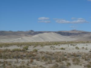 Na also, zurück auf Feld eins, bis zur Einfahrt 261 und weiter auf der I-80 bis Battle Mountain und auf die 305 South. Wir fahren und fahren und fahren…… auf einer Hochebene. Mal ein paar Kühe, dann irgendwo ein Farmerhaus und weiter Kilometer für Kilometer wieder nichts. Übergänge oder Pässe, bis auf 1’800m , dann wieder runter auf 1’400m. Wir kommen doch noch in Austin an und in einem kleinen Restaurant stillen wir unseren Hunger. Austin ist ein altes Silberminenstästchen, welches sehr Trump freundlich ist. Auf die 50 West bis Fernley. Wieder rauf und runter, vorbei an einem ausgetrockneten Salzsee, Sanddünen und Steppe. Je näher wir nach Fernley kommen, wird intensiv bewirtschaftet. Es riecht nach frisch geschnittenem Gras. Nun weiter auf der I-80 West bis Reno. Sehr starker Verkehr und wir fühlen uns nicht wohl in dieser Hektik.