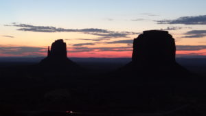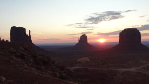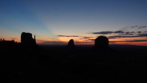 Nach einem wünderschönen Sonnenaufgang stehen wir bereits um 08:30h bei den Goulding’s Tour vor der Tür. Erstaunt über die Personen „From the other side“ machen sie uns klar, dass die Wegfahrt ins Monument Valley um 08:00h war. Auf unseren Vouchers jedoch steht 09:00h. Ganz unkompliziert organisiert die Lady am Desk einen zusätzlichen Guide und somit kommen wir zu einer Privatführung.