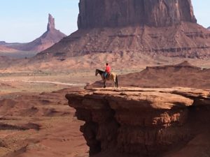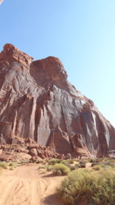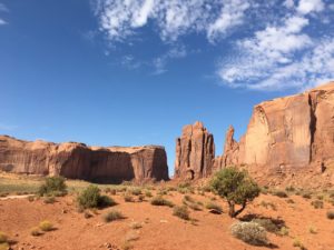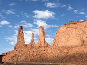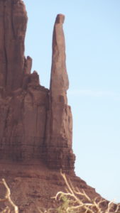 Diese führt nahe an die Felsformationen Chief, Madonna, Three Sisters, Elephant, San’s Eye, Big Hogan, usw. vorbei. Die Navajos Indianer haben allen Felsen einen Namen gegeben. Sie sind sehr stolz auf ihre fantastischen Landschaft. Hier wurden einige Western mit John Wayne gedreht was den Navajo Indianern zu „Reichtum“ verholfen hat.