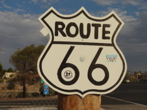Unser Ziel, Kingman, ist nicht mehr weit. Die Strasse führt in die Höhe über Oatman. Ein kleiner touristischer Ort, der vor allem wegen den Eseln bekannt ist. Die laufen frei auf der Strasse rum. Vor uns ist der „Sitgreaves Pass“ Höhe 3’350 Fuss (1’150m). Die Kurven sind wunderschön zum Fahren. Ist dieser überwunden, führt die 66 wieder gerade aus bis nach Kingmann.