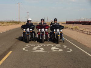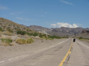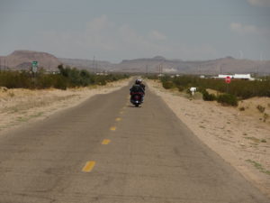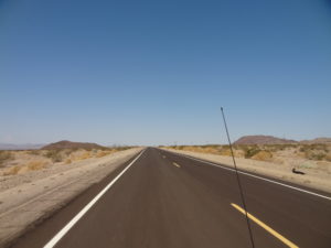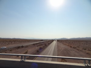 Die Nacht hat keine grosse Abkühlung gebracht und wir sind froh, dass die Abfahrt auf 07:30h geplant ist. Auf die I-40 (Interstate 40) Richtung Needles. Bald zweigen wir ab, auf die Historic Route 66. Wegen Bauarbeiten ist dieser Teil über Ludlow, Bagdad bis Needles leider nicht durchgehend offen und wir weichen auf die I-40 aus. Meile (1’608 Meter) um Meile durch die Wüste und gerade aus.
